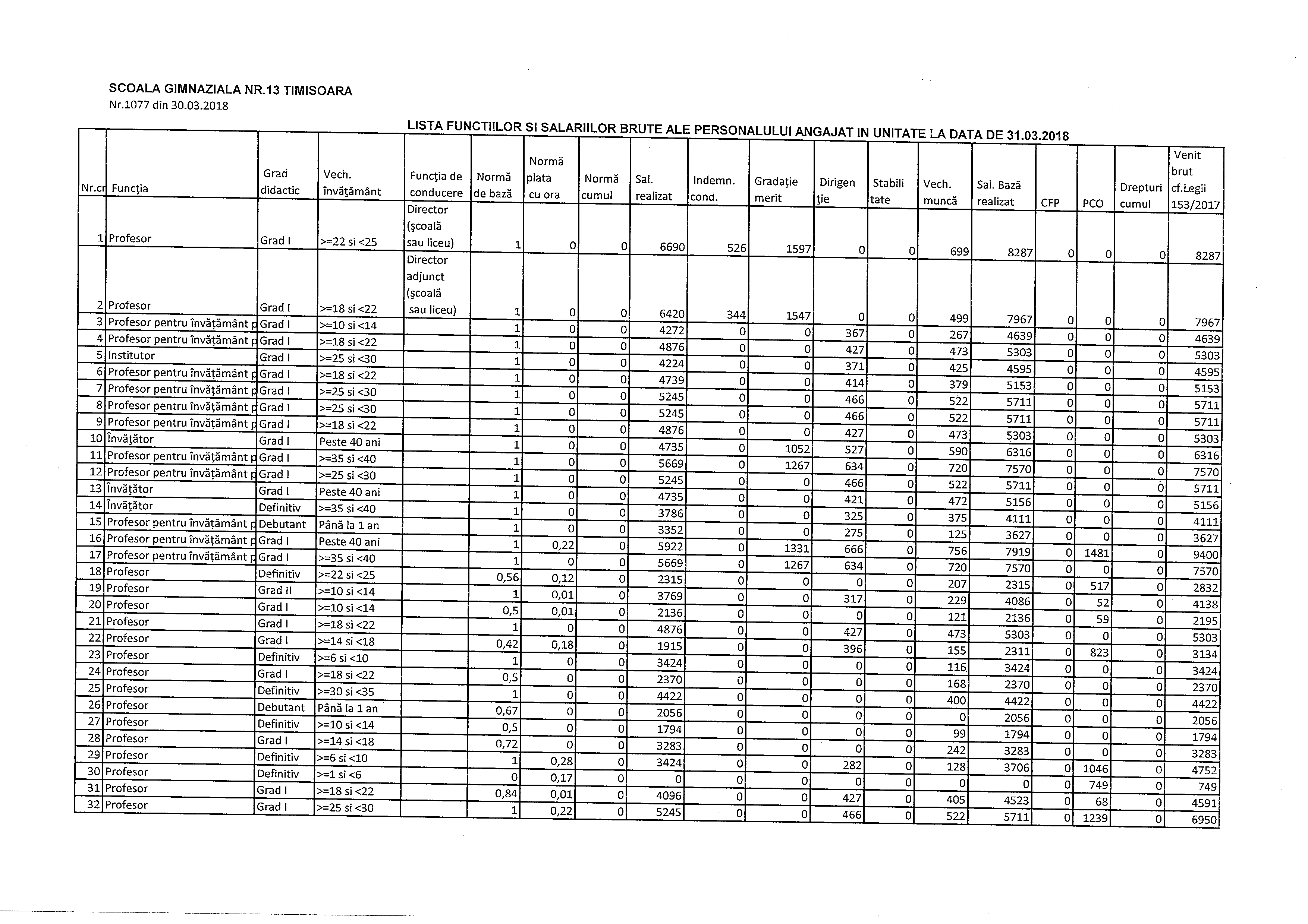 | 523 | SCOALA GIMNAZIALA NR.13 TIMISOARA | STR.MUZICESCU,NR.14 | 28.10.2016 | LIN AVMC.6165839.AR | MAR | 486 | 161100004 | 1270 | |